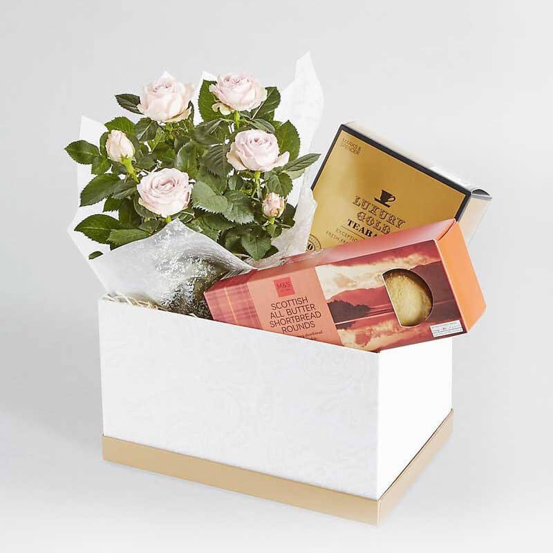 Hộp quà có hình thức sang trọng, bắt mắt, bên trong là 12 bông hồng sáp màu sắc rực rỡ và một chú gấu bông đáng yêu.
